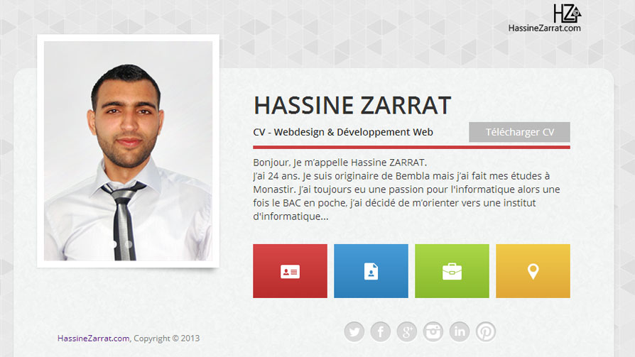 J’ai 24 ans. Je suis originaire de Bembla, j’ai fait mes études à Monastir. J’ai toujours eu une passion pour l'informatique alors une fois le BAC en poche, j’ai décidé de m’orienter vers un institut d'informatique, l'Institue Supérieur d'Informatique et de Mathématique de Monastir dans lequel j’ai suivi un cursus d’informatique de trois ans. J’ai eu la chance de pouvoir effectuer mon stage de fin d’études au sein de la société " Creative Loft ".